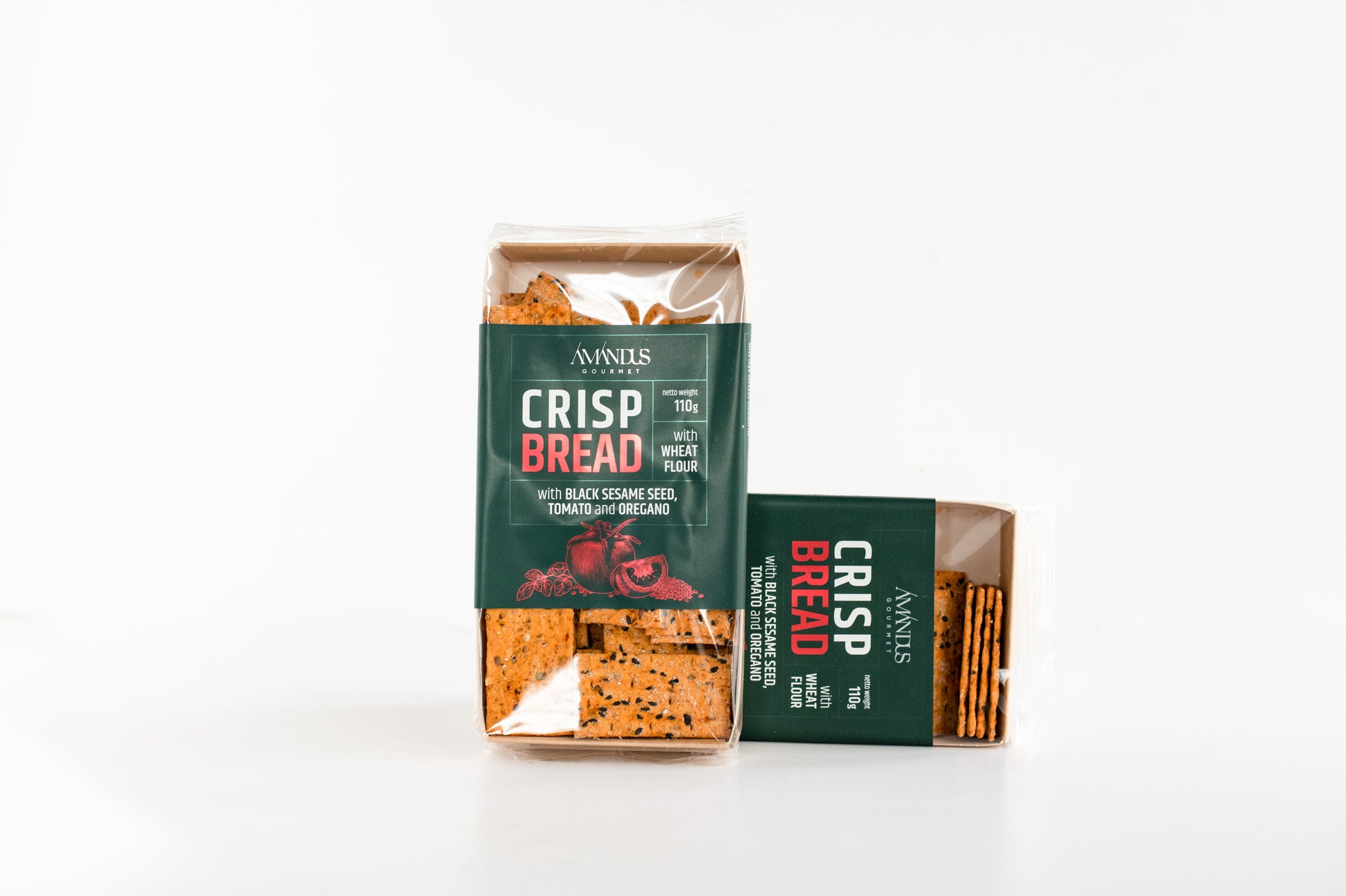 Sudedamosios dalys: kvietiniai miltai (43,6%), vanduo, viso grūdo dalių ruginiai miltai, juodojo sezamo sėklos (3,9%), mielės, pomidorų granulės (3,1%), linai, rapsų aliejus, jūros druska, cukrus, raudonėlis (0,5%), sezamo sėklos. Gali būti pieno, migdolų ir lazdyno riešutų pėdsakų. Laikyti sausoje ir vėsioje vietoje, apsaugotoje nuo tiesioginių saulės spindulių.