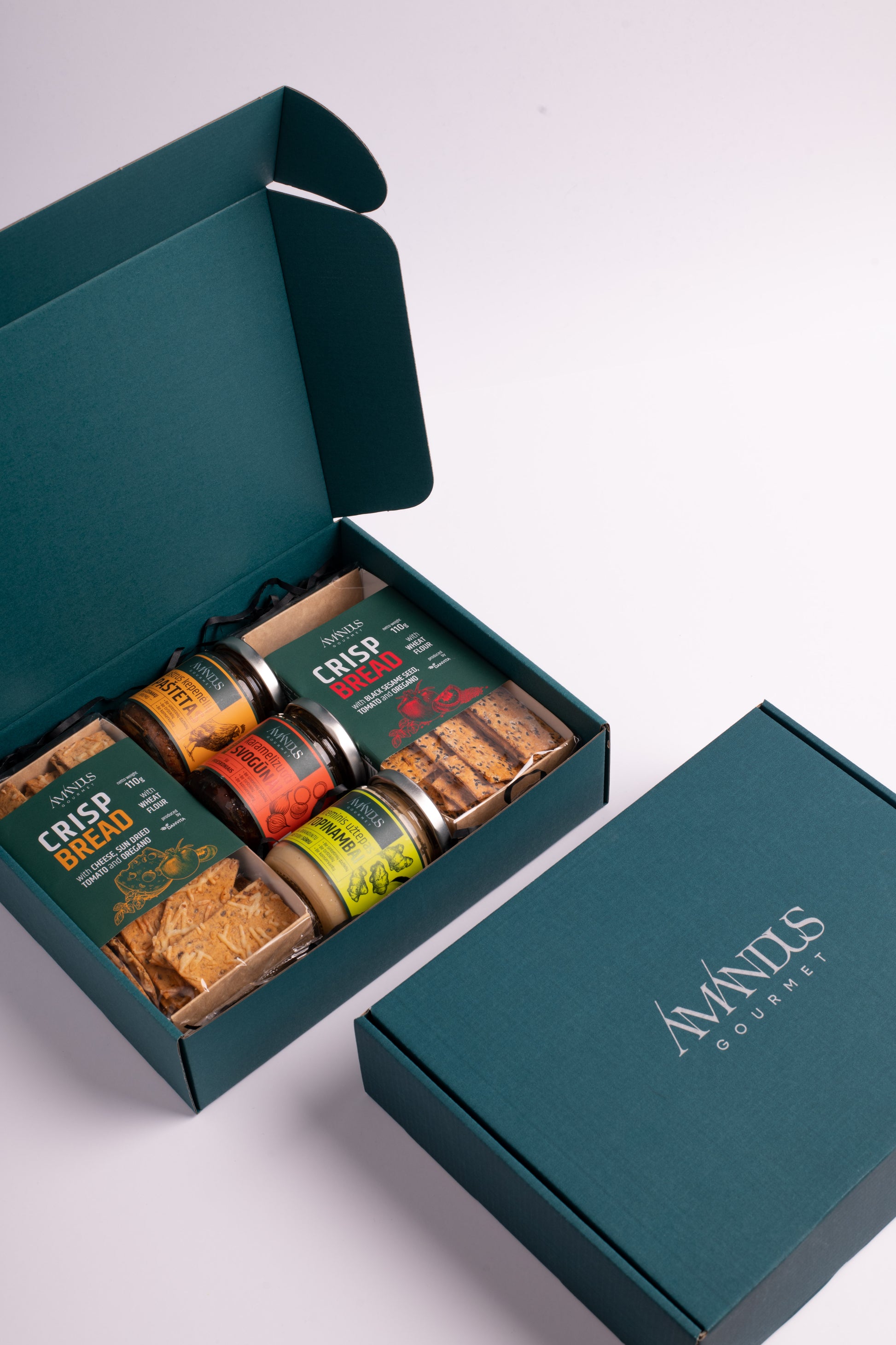 Išskirtinis gurmaniškas rinkinys, kuriame dera trys sodrūs pagardai ir du traškių duoniukų pakeliai. Tai puikus derinys greitam, bet gurmaniškam užkandžiui — kremiški pagardai ir traškūs duoniukai papildo vienas kitą ir leidžia lengvai susikurti mažą skonio šventę bet kur ir bet kada.